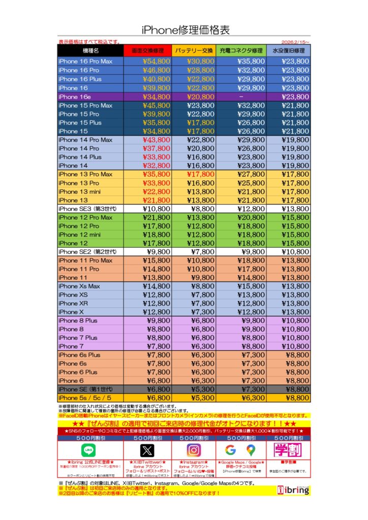 2/15~ iPhoneの修理価格を改定しました!